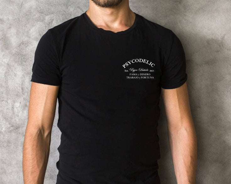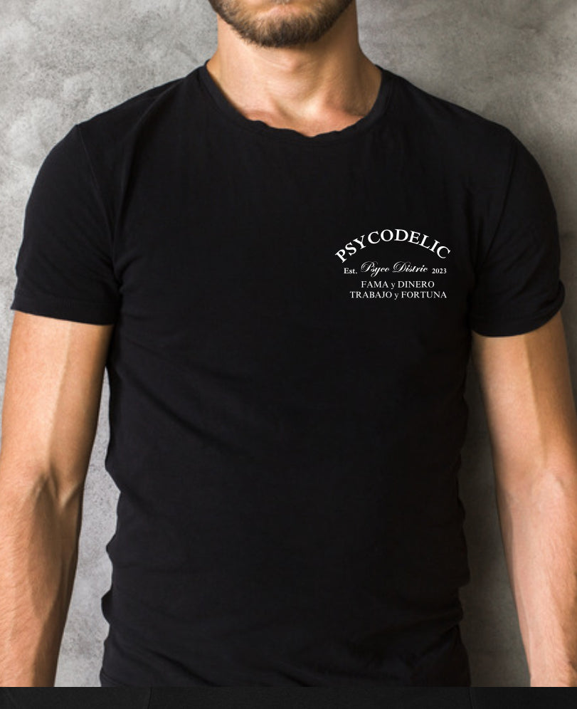 "Introducing PSYCO DISTRICT, the ultimate cotton t-shirt. Made from high-quality, soft cotton, this shirt offers superior comfort and durability. Perfect for everyday wear, it will keep you cool and stylish in any setting. Upgrade your wardrobe with PSYCO DISTRICT."